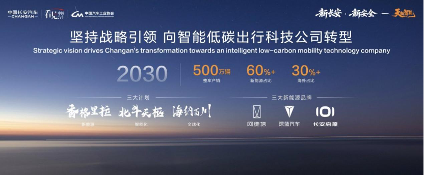 根据规划,到2030年,中国长安汽车将力争实现整车产销达500万辆,其中新能源占比超60%,海外占比超30%。为全球更多用户,创造高品质的出行生活。