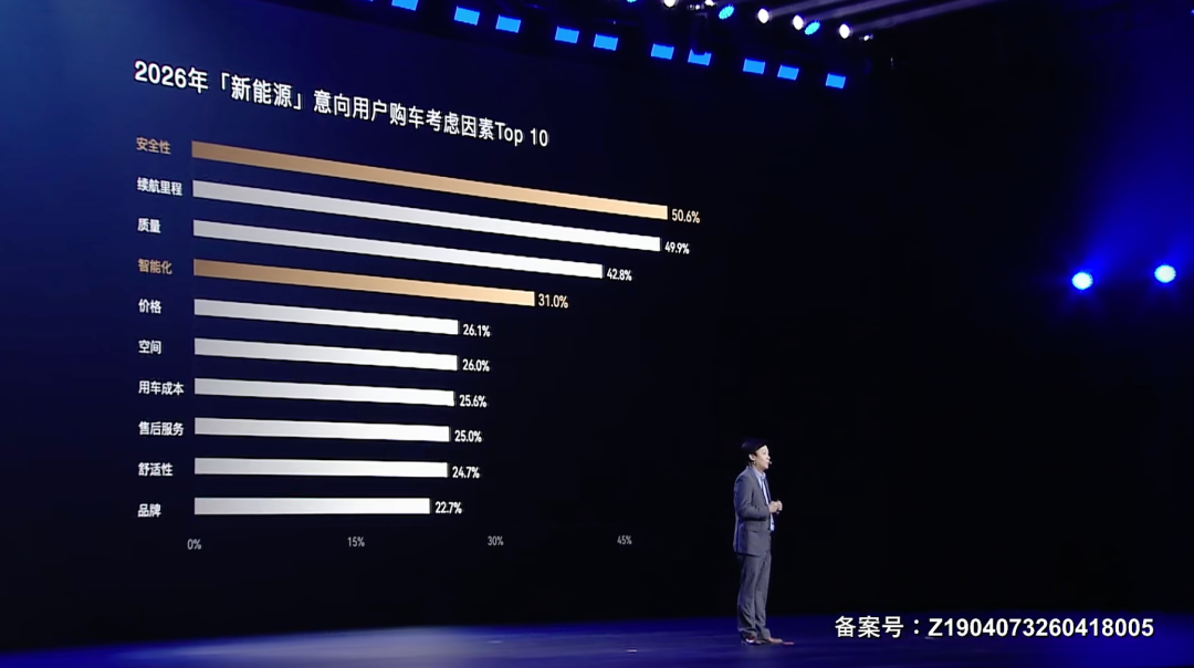 用户端同样印证了这一趋势:智能化已升至用户购车考虑因素的第四位(华境S发布会数据)。