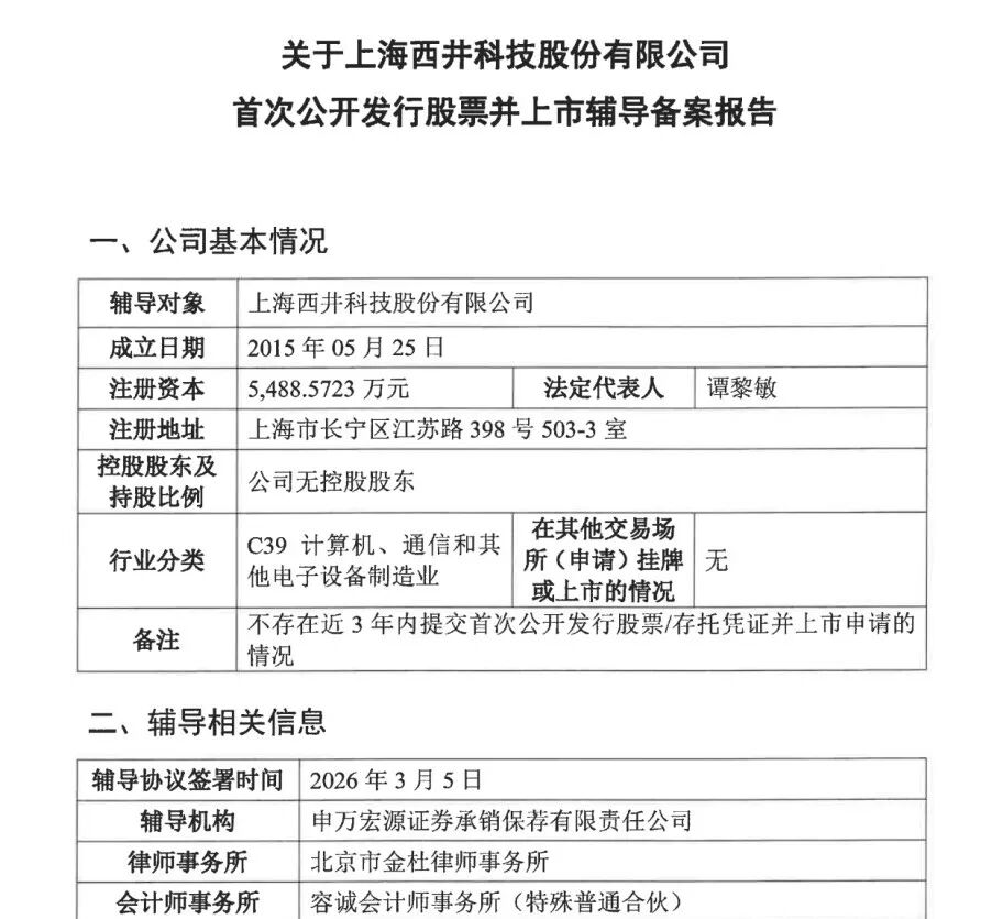 上海西井科技股份有限公司更新A股IPO辅导备案,辅导机构由中金公司变更为申万宏源证券。
