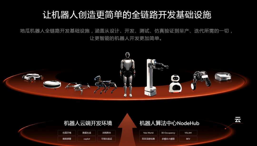 面向云侧,地瓜机器人还推出了一站式开发平台,可以提供从数据生成、标注、训练、仿真到开发机器人应用的完整链路,让机器人模型与应用能够在统一环境中持续演化。