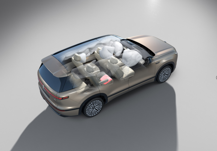无论是底部防护承受2000J撞击(为国标13倍)的“六边形电池” ,还是C柱额外增设2个让气帘提前25毫秒起爆的碰撞传感器 ,抑或是2.9米贯穿一至三排的超长侧气帘,这些看不见的成本,构成了ID. ERA 9X的安全底线。它遵循的是“上汽大众碰撞安全4.0”标准——以欧洲标准为基石,同时满足国标、C-NCAP及C-IASI,并叠加大众集团更高标准。
