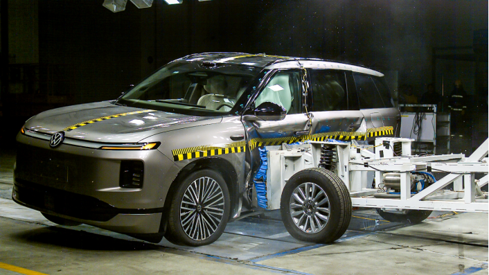 在发布会前夕,上汽大众特意举办了一场碰撞安全体验,ID. ERA 9X完成了80km/h 70%偏置高速追尾、56km/h正面100%重叠刚性壁障碰撞以及60km/h可变形移动壁障侧面碰撞的“三连撞”测试 。
