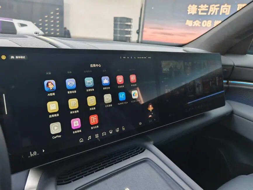 与众08在内饰上也做了不少的减法,但是人机工程学方面却挑不出一点毛病,多功能方向盘两侧依旧配备了实体按键和滚轮,车窗和后视镜调节依旧位于车门的老地方,还有好用的怀挡以及中央两个无线充电面板,都能看出这家老牌大厂并不会为了创新而创新,一切依旧以实用为本。