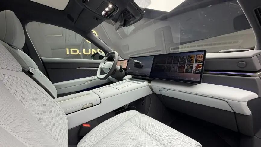 如果说外观上已经打破了我对德系车的固有认知,那与众08的内饰便把我的认知打破的“更加彻底”,与外观一样,它的内饰也充满了十足的未来感,首先这台车的仪表台仿佛“隐身”了一半,你能看见它的阶梯型设计,全液晶仪表和中控屏都采用了悬浮式设计,在我印象里这种造型的仪表台也就存在于一些概念车上,量产车应该也是头一遭。