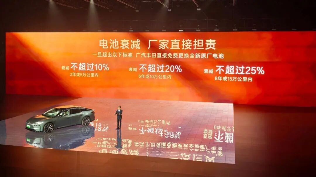 因为,如果电池自燃,广汽丰田直接赔付新车。因为,动力电池2年或5万公里衰减超过10%,6年或10万公里内超过20%,8年或15万公里内超过30%,都可以免费更换全新原厂电池。即便消费者对冬季续航有疑虑,广汽丰田也有专人对接,甚至可免费更换新电池。