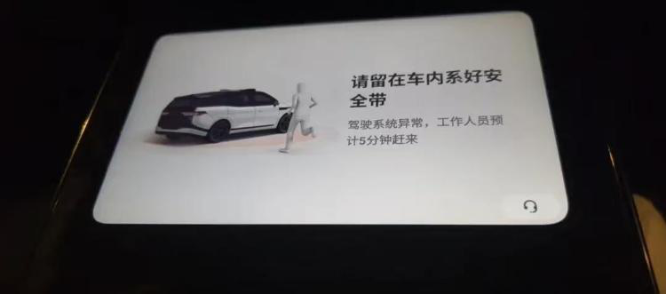 鲁先生坐在一辆萝卜快跑的后座上,眼看着车子在路中间突然停下。屏幕上弹出一行字:“请留在车内系好安全带,驾驶系统异常,工作人员预计5分钟赶来。”