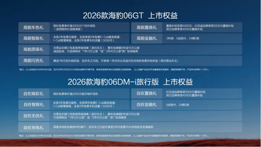 4月2日,比亚迪海洋网两款个性极为鲜明的产品——2026款海豹06GT与2026款海豹06DM-i旅行版正式上市。前者定位“高能潮趣座驾”,瞄准年轻人的第一台GT;后者则打出“全球精品超混旅行车”旗号,直击家庭用户的休旅与日常通勤复合需求。