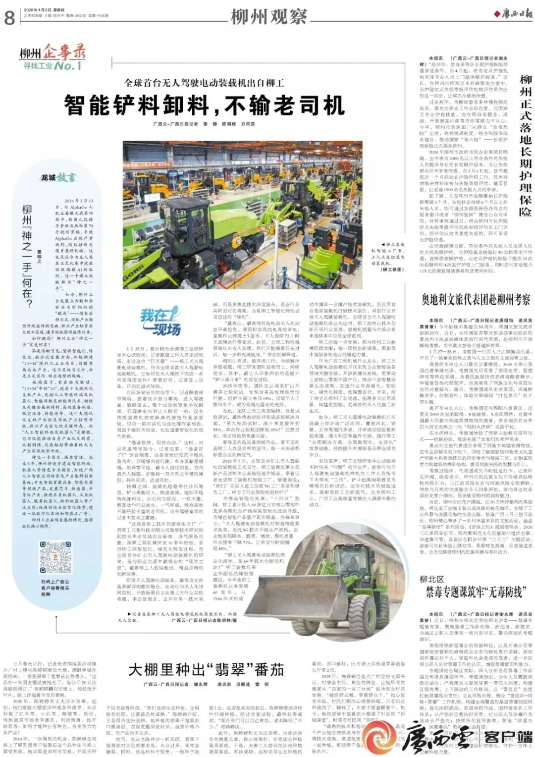 参考文献:广西云-广西日报 报道 《广西日报柳州企事录|全球首台无人驾驶电动装载机出自柳工》 记者: 唐绍怡 方凤琪 黎静
