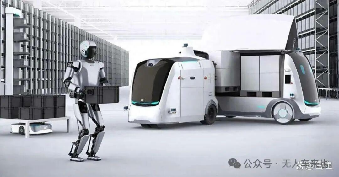 分工明确:人形机器人负责非结构化场景(分拣、装配、上下料),无人车负责长距离、重载运输;