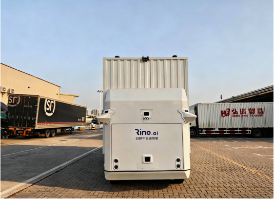 继白犀牛推出的行业首款全车规级无人车RX树立起可靠性标杆、白犀牛自动装卸车后,白犀牛的大运力无人车R24也已开始在深圳某物流园区内开启测试性运营。
