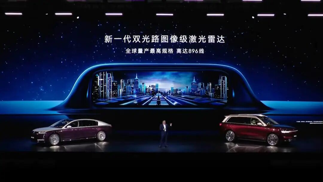 这不是重点,在发布会上,华为正式发布了目前全球量产最高线束的激光雷达——896线双光路图形级激光雷达。而焕新后的尊界S800和问界M9也成了最先搭载这一激光雷达的两大车型。