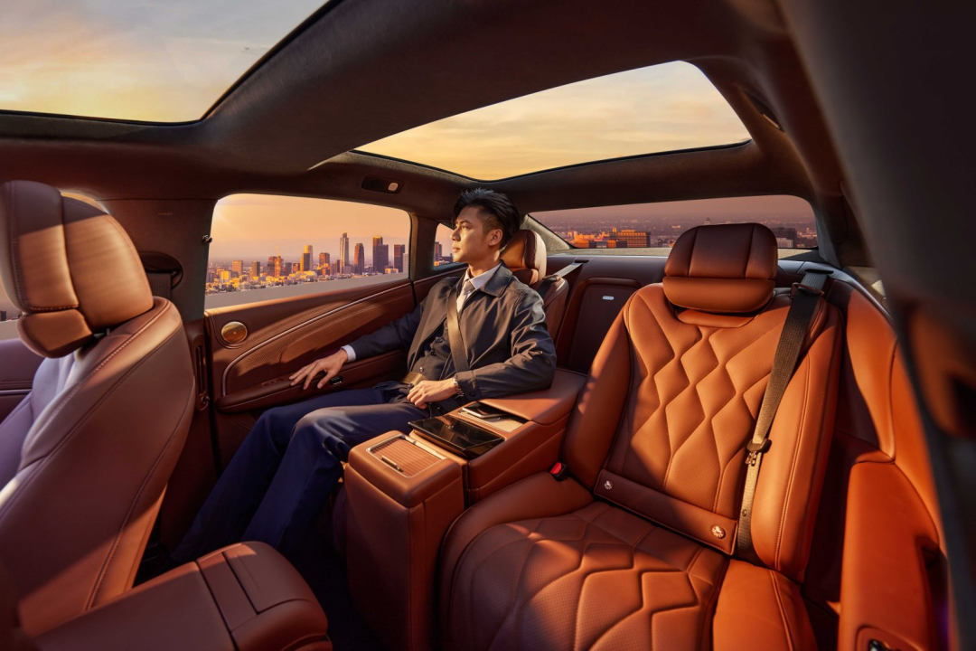 独特的后排2+1变形座椅,让后排在两个独立宽体座椅与三座后排之间自由切换。四座模式下,中间的座位会形成联动成一个智慧中岛,配备了后排控制屏以及航空小桌板,剧院式的后排座椅也高于前排。