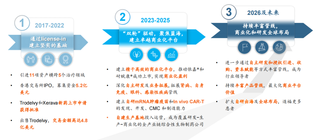 聚焦当下,云顶新耀正迈入全面爆发的第三阶段。在此阶段,公司将通过自主研发、授权引进、资本并购等多元方式持续丰富管线储备,逐步构建高价值产品组合,稳步向全球领先的综合性生物制药企业目标迈进。