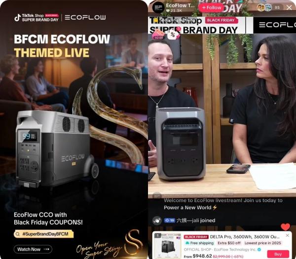比如,便携电源品牌EcoFlow在Super Brand Day期间推出新品移动电源,并通过家庭露营实拍短视频把产品力融入真实生活场景,仅用两天其日均GMV便突破70万美金,刷新历史纪录——这背后是硬核产品凭借TikTok Shop“专业说服+场景共鸣”的双引擎打法,成功实现从技术圈走向大众市场的漂亮破局。