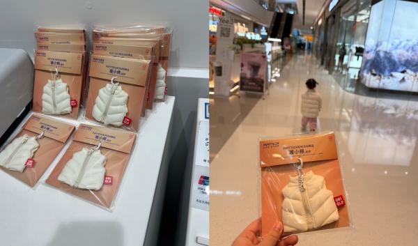 这件等比例缩小的棉服马甲,是一款名为“暖小棉”的优衣库挂件,它不仅可以作为背包、衣服的单独装饰,还可以穿在迷你娃娃的身上,让它们过冬时成为最靓的仔。