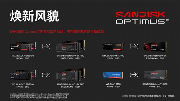 SANDISK Optimus系列是为追求速度和高效而打造的,产品主要包括SANDISK Optimus 5100 NVMe SSD,前身即用户们熟悉的WD Blue 5100 NVMe SSD。