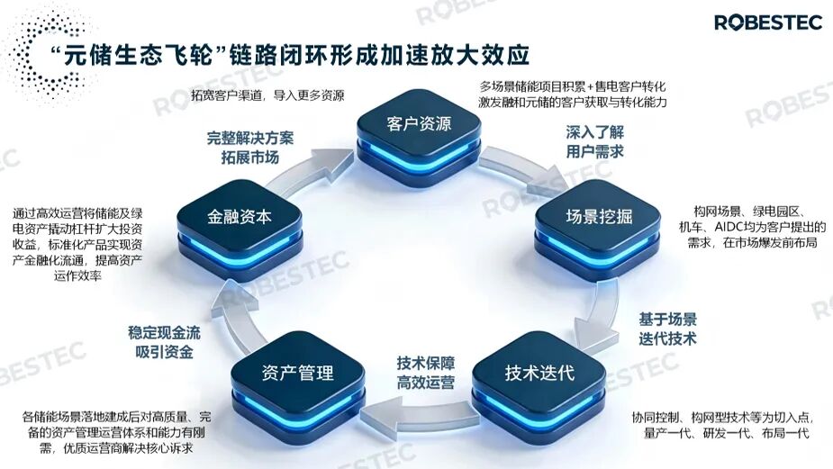 他表示,“元储·海内经”不仅是一套技术架构,更是一个与用户协同演进的“操作系统”。它通过客户导入、场景挖掘、技术共享、功能迭代、资产聚合与资本赋能六大环节联动,形成“生态飞轮”,在降低能源系统优化门槛的同时,携手合作伙伴共建开放生态,实现储能资产全生命周期价值最大化,并同步放大生态伙伴的收益空间。