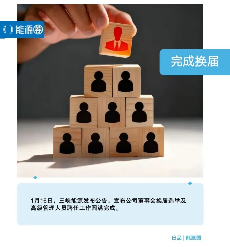1月16日,三峡能源发布公告称,公司于1月15日召开2026年第一次临时股东会,选举产生了公司第三届董事会非职工董事成员。同日,公司召开第三届董事会第一次会议,审议通过了选举董事长、董事会专门委员会成员,聘任高级管理人员及证券事务代表等相关议案。