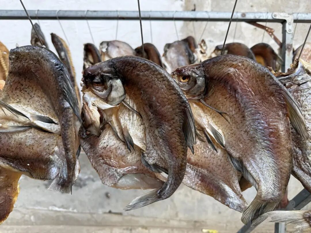 图说:孝感当地盛行钓鱼,冬季,大家在家门口晾晒鱼干。