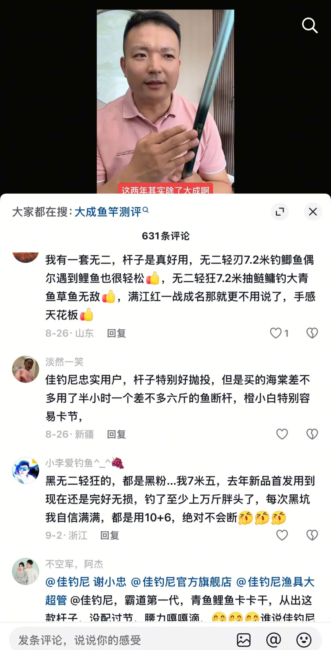 爆款之外,更多日常产品的迭代灵感,源源不断地在抖音用户与佳钓尼的互动中迸发。很多高频问题会直接转化为内容选题,比如夏季夜钓装备怎么选,一些关于产品调性升级、硬度和钓重优化的讨论,最终也会落实到产品中。