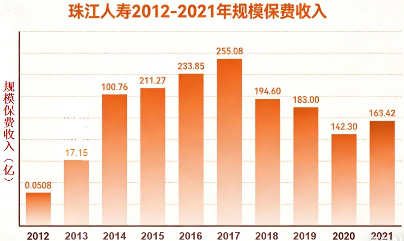 珠江人寿将这一模式运用得淋漓尽致,规模保费收入从2012年的0.05亿元,一路飙升至2017年的255亿元峰值,在短短三年内便实现盈利,打破了行业内的规律,一度成为保险业的“黑马”。