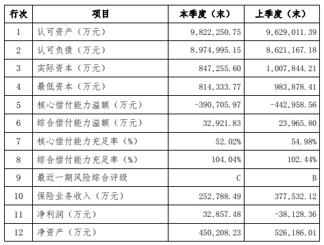 这一数据意味着其抵御风险的能力已严重不足,无法满足保险业务持续经营的基本要求。
