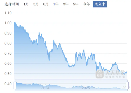这只成立于2023年3月24日的基金,在不到三年时间里,基金净值从1元跌至约0.52元,几近腰斩。