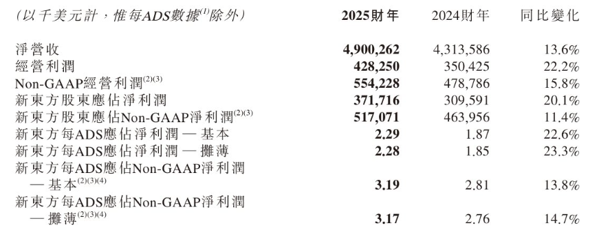 财报显示,新东方集团(09901)2024财年合并营收约43亿美元,创下新高,甚至超过“双减”之前;2025财年全年也实现盈利。