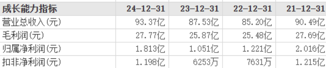2024年,公司一改以往颓势,当年营收虽仅同比增长6.68%至93.37亿元,但归母净利润和扣非后归母净利润却均实现双位数增长,其中归母净利润同比增长72.44%至1.81亿元,扣非后归母净利润同比增长91.6%至1.2亿元。