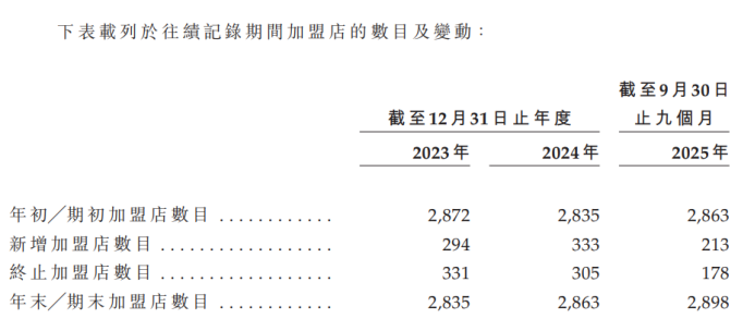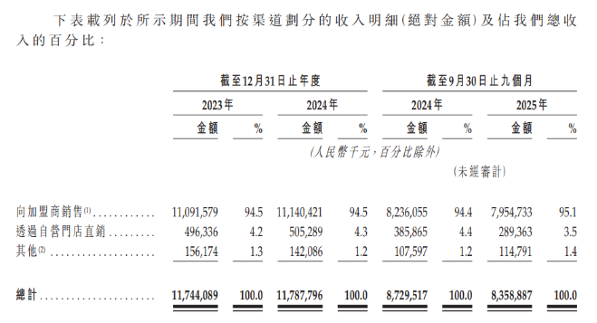而在中国内地其他地区(下称“其他地区”),报告期各期,前述地区的门店数量分别为838家、826家和852家,呈现先降后升的趋势。但与之背离的是,来自其他地区的收入在2024年同比下滑4.89%,2025年1至9月仍下降0.69%,可以看出,当前在其他地区的门店扩张,尚未能带动整体收入规模突破。