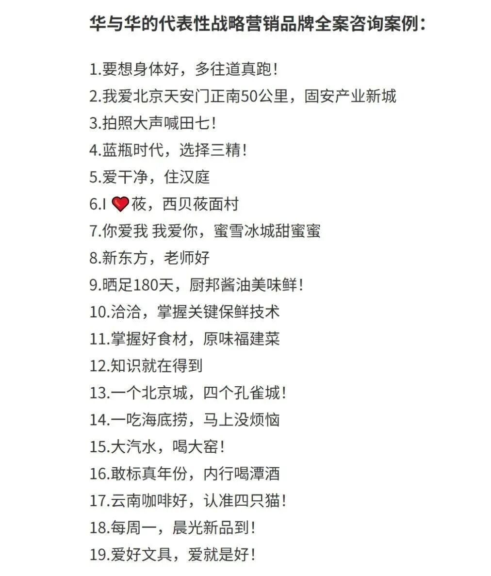 这些案例让华与华在民营企业老板中积累了不少“粉丝”,华楠也直言华与华的生意实质是粉丝经济,只要客户信,事情就成了。