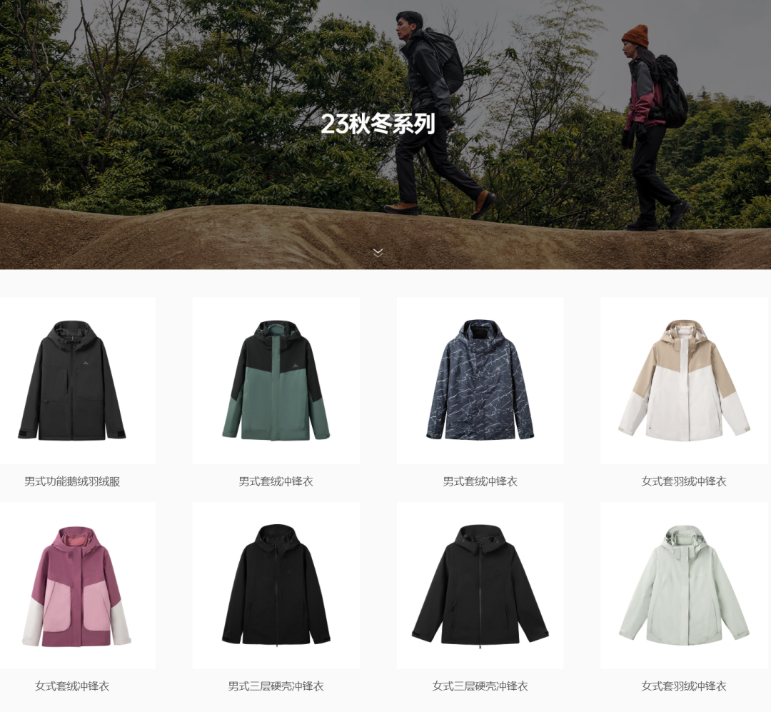在公司官网,其冲锋衣产品款式至今还停留在“23秋冬系列”。
