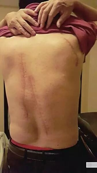 李耀清后背长长的刀伤触目惊心。来源:京华时报