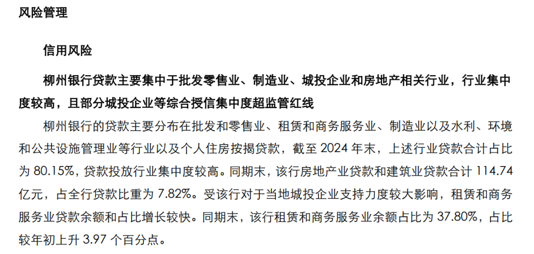 根据东方金诚今年7月发布的最新评级报告,柳州银行的贷款高度集中于城投企业和房地产相关行业。