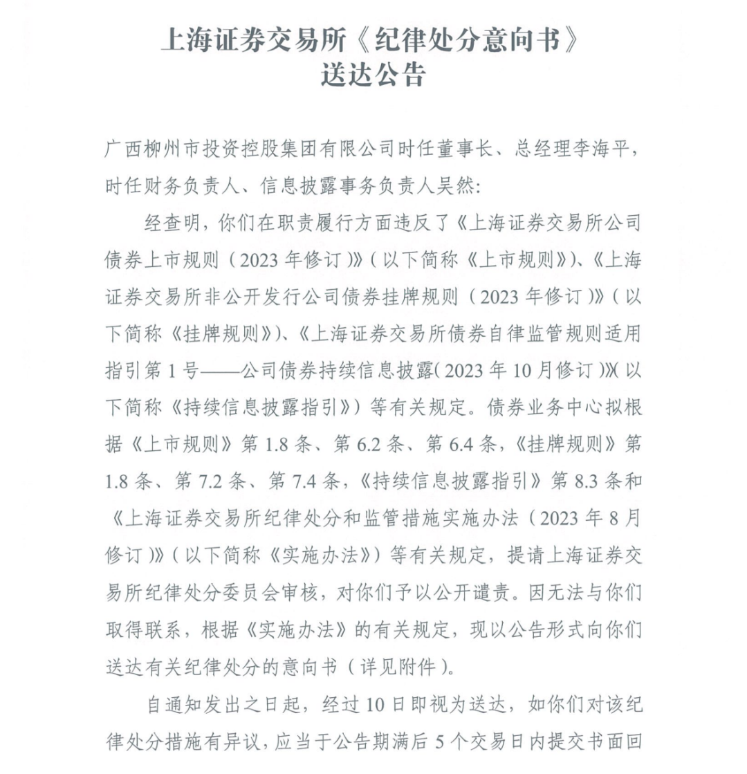 近日,广西柳州市投资控股集团有限公司(以下简称“柳控集团”)的两位高管处于失联状态,连上海证券交易所都无法与之取得联系。