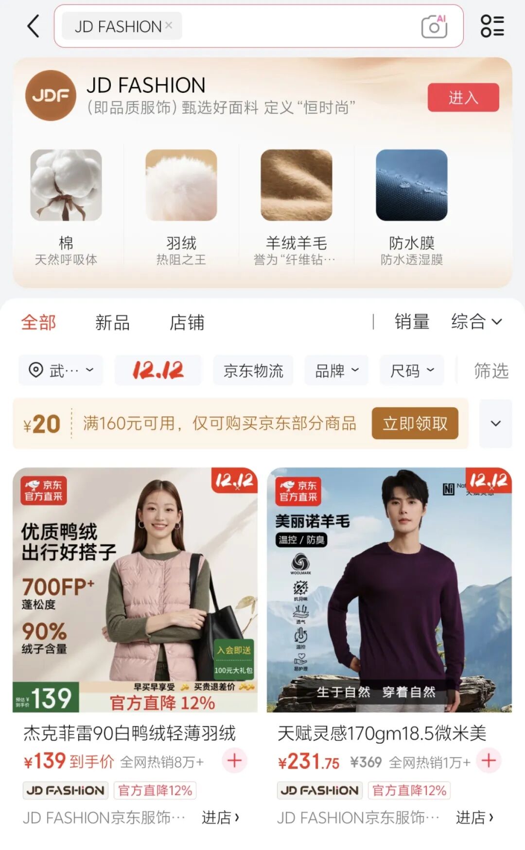 而在用户心智环节,为了让好面料被看见、被信任,京东JD FASHION不仅通过「面料实验室」线下体验、明星与达人内容共创等方式放大内传播力度,还全面打通京东平台搜索、推荐、频道等核心场域,确保品质商品在每一个触点都能被看见,实现从曝光到转化的完整闭环。