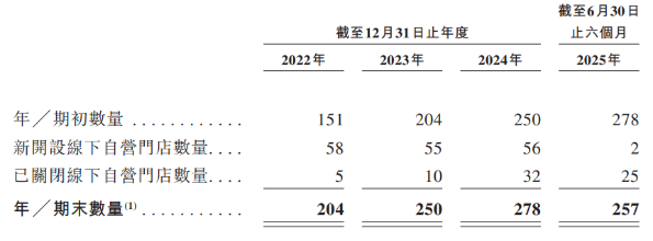 招股书显示,公司线下渠道收入在2024年呈现波动,该年其线下渠道呈现0.63%的负增长至6.35亿元,其中该年公司新开线下自营门店56家,门店净增长24家,但其自营渠道收入却同比下滑3.94%。这一“店增收减”的背离表明,公司新开门店尚未形成有效产出,或存量门店的运营效率出现下滑。