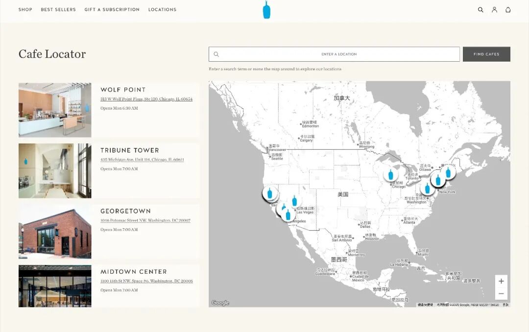 蓝瓶咖啡在美国拥有约 77 家门店