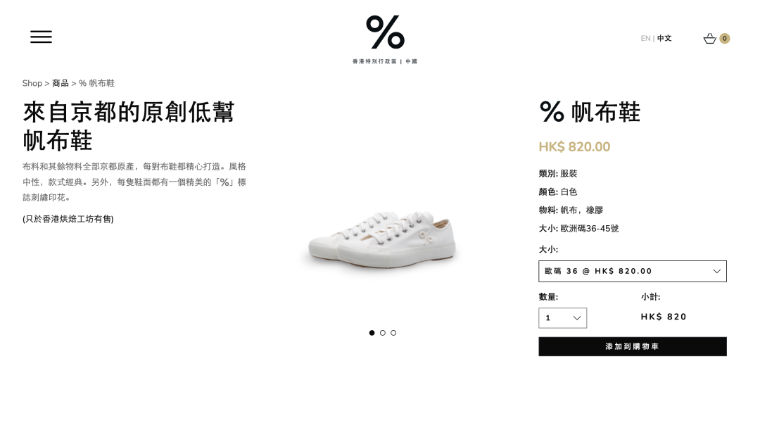 % Arabica 甚至还卖卫衣和帆布鞋,帆布鞋定价 820 港元,号称全部京都原产。