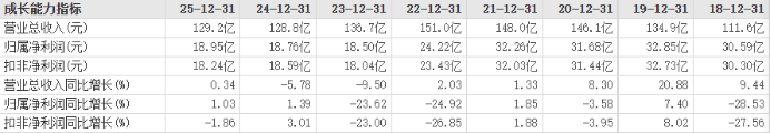 2025年度(报告期内),公司实现净利润19.09亿元,同比增长2.44%;营业收入129.21亿元,同比增长0.34%。不良贷款率1.71%,较年初下降0.08个百分点;拨备覆盖率185.81%,较年初增加2.82个百分点。