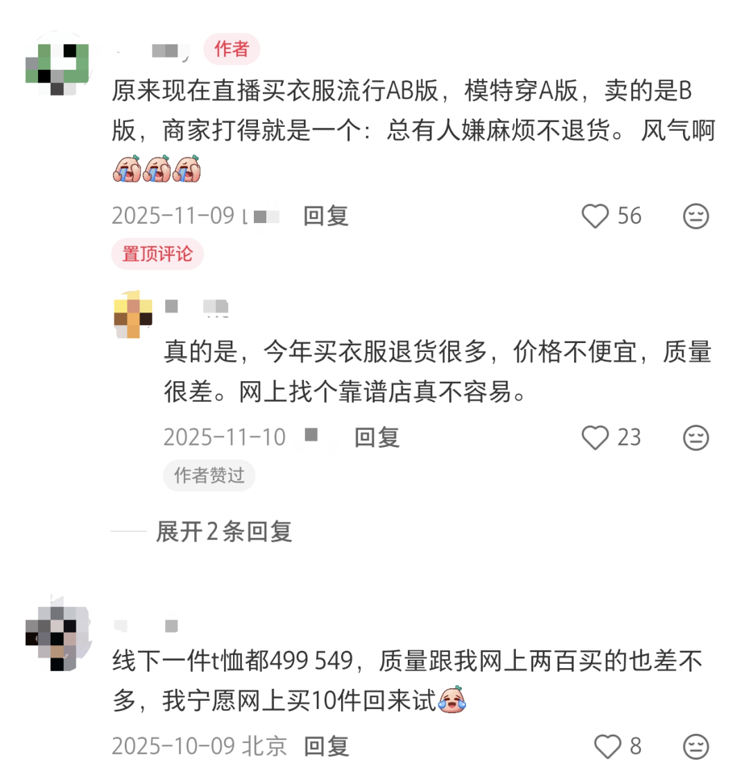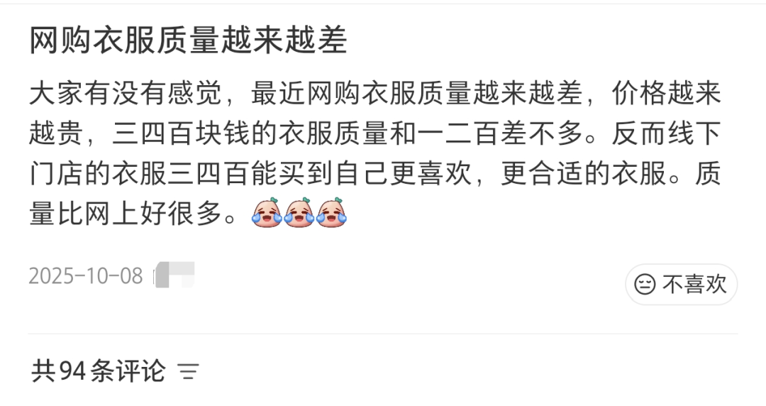 ▲社交媒体上消费者对服装网购乱象的讨论
