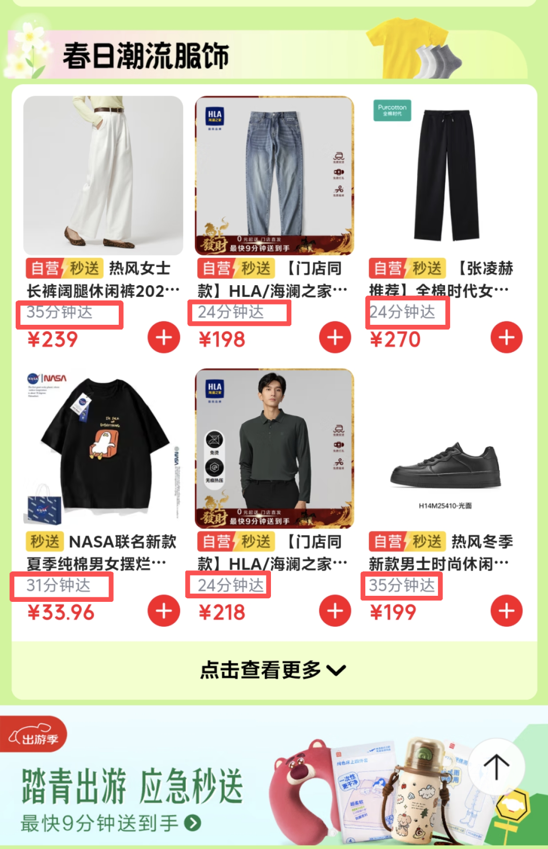 ▲多款商品在京东时尚秒送频道显示都在30分钟左右送达