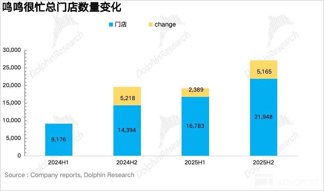 从开店节奏上看,2H25 很忙净新增 5165 家门店,相较于上半年明显提速,总门店数量突破两万家。