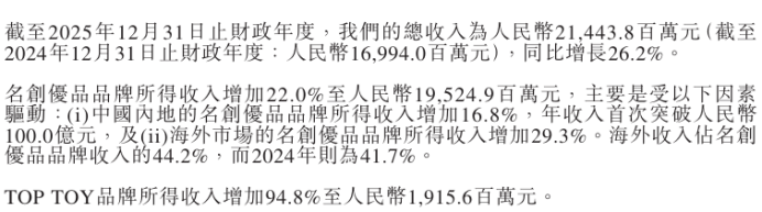名创优品近些年持续开发海外市场。2025年,名创优品海外收入占比已提升至44.2%,几乎撑起半壁江山。