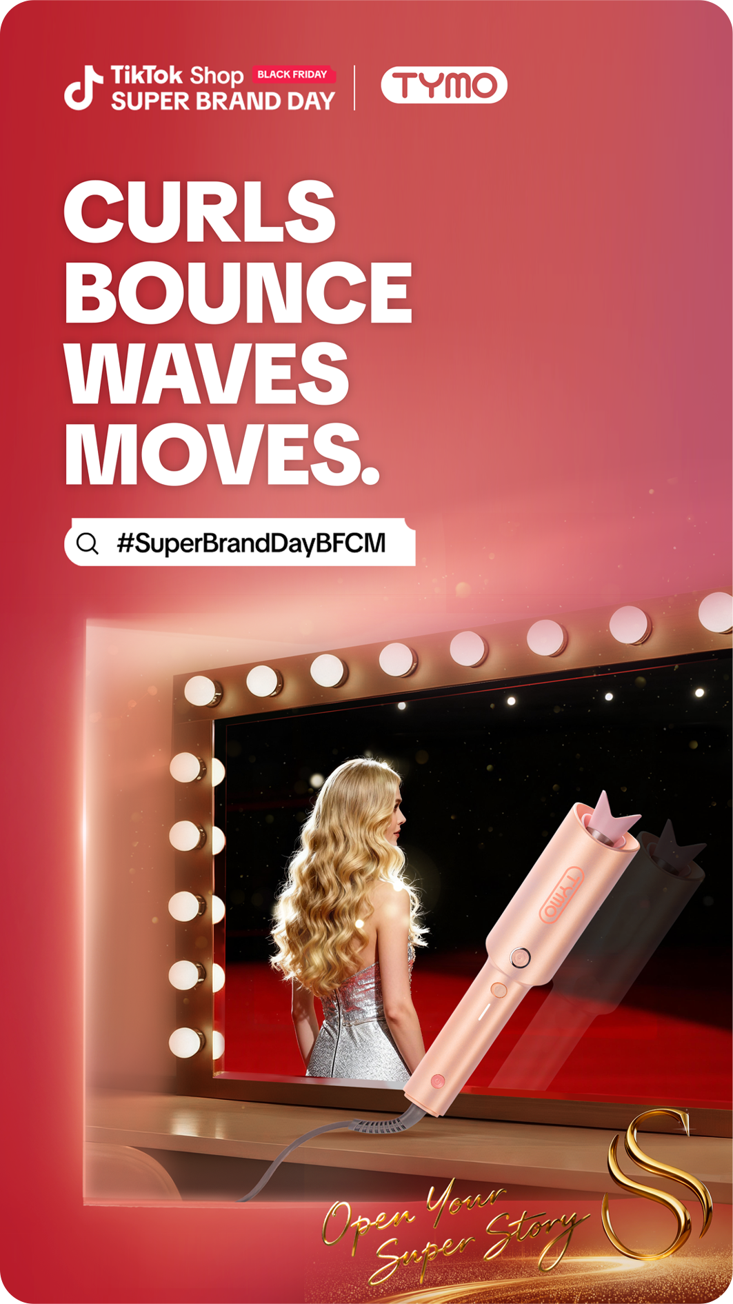 TikTok Shop美区首页推荐位上,好莱坞女星Lindsay Lohan的身影格外吸睛——她身边,一把玫金色TYMO自动卷发神器也十分亮眼,视频下方挂载着#SuperBrandDayBFCM、#TYMOSuperBrandDay等TikTok Shop热门大促话题标签,也为商品带来源源不断的流量。