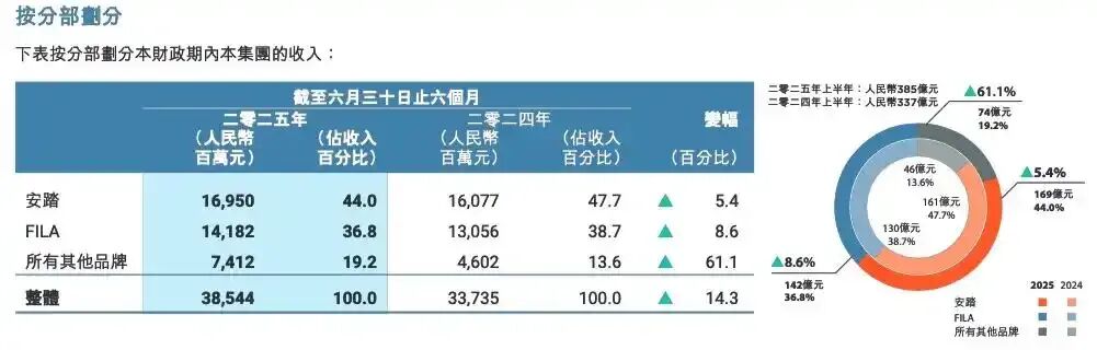 2025年上半年,安踏集团营收达到385.4亿元,同比增长14.3%,近乎耐克、阿迪达斯大中华区之和。