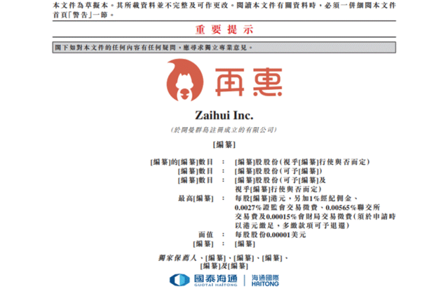 香港、新加坡两地上市2026年2月13日,再惠向港交所提交上市申请书,独家保荐人为国泰海通。
