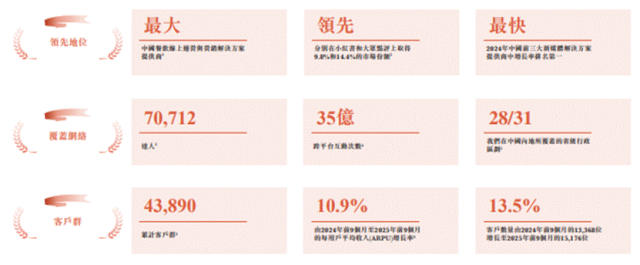 据招股书披露,截至2025年9月30日,再惠自成立后已累计服务43,890位客户,而截至2024年12月31日,累计服务客户数为35,449位,增长率为23.8%,且相较于2024年9月30日,再惠截至2025年9月30日止九个月的每用户平均收入增长10.9%。截至2025年9月30日,再惠与大众点评、抖音平台及通过第三方代理机构的超过70,000位达人合作,截至2025年9月30日止九个月,赋能在小红书、抖音及大众点评等平台上约464,410条帖子及视频的创作,累计产生逾35亿次互动。2025年上半年,新客户在订阅了再惠在线商户解决方案的前四个月内实现了20.3%的团购量增长,且帮助订阅在线商户解决方案时星级评分低于4.00的客户提升大众点评星级评分0.47分,使其平均星级评分于三个月内从3.69提升至4.16。中国餐饮线上运营及营销解决方案行业是一个巨大且不断增长的机会。然而,中国的餐饮线上运营和营销服务行业高度分散,前五大服务提供商合计市场份额仅3%。据灼识咨询的资料,按2024年收入计,再惠是中国最大的餐厅线上经营及营销解决方案提供商,在该行业拥有0.7%的市场份额。面临不小的竞争压力。