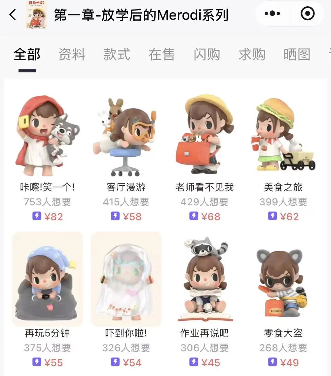 最近的新IP“放学后的Merodi”在2月27日首发,更是线上线下预冷,不仅千岛APP、咸鱼APP普通款低于官价,线下也是货源充足,黄牛也消失不见。