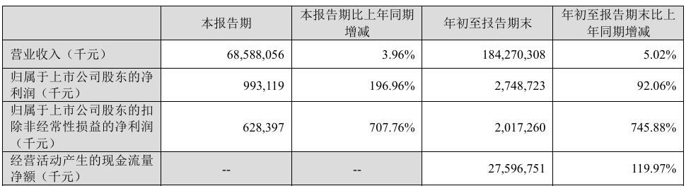金龙鱼第三季度报告显示,公司前三季度实现营业收入1842.7亿元,同比增长5.02%;归母净利润27.49亿元,同比近乎翻倍,增幅达92.06%。其中,第三季度表现尤为突出,单季实现营业收入685.88亿元,同比增长3.96%,归母净利润为9.93亿元,同比飙升196.96%。